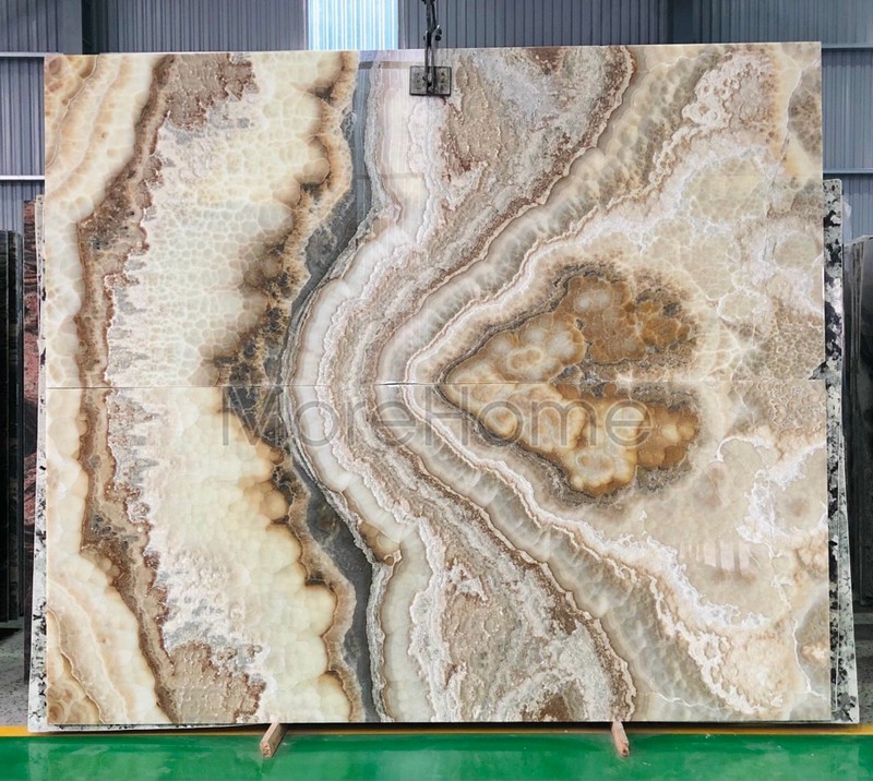 Bạn có thể dùng đá onyx để tạo thành những bức tranh đá sống động trên tường cùng với việc kết hợp các loại đèn trang trí như đèn chiếu rọi, đèn hắt… tạo nên sự hiện đại, trang trọng.