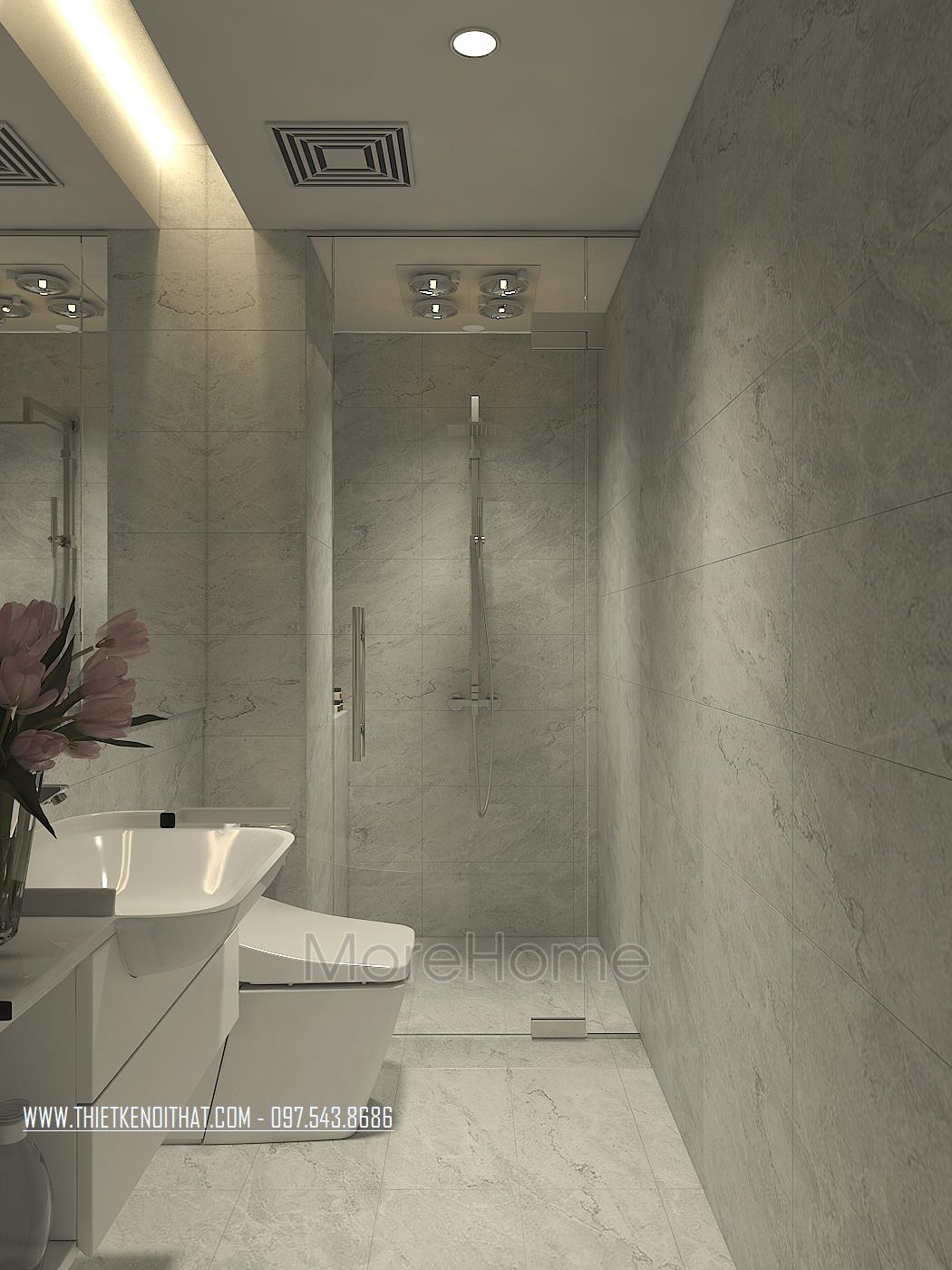Đá MS008 sử dụng trong thiết tại biệt thự Bắc Giang mang tone màu trắng và xám chủ đạo, mang đường nét hiền đại sang trọng