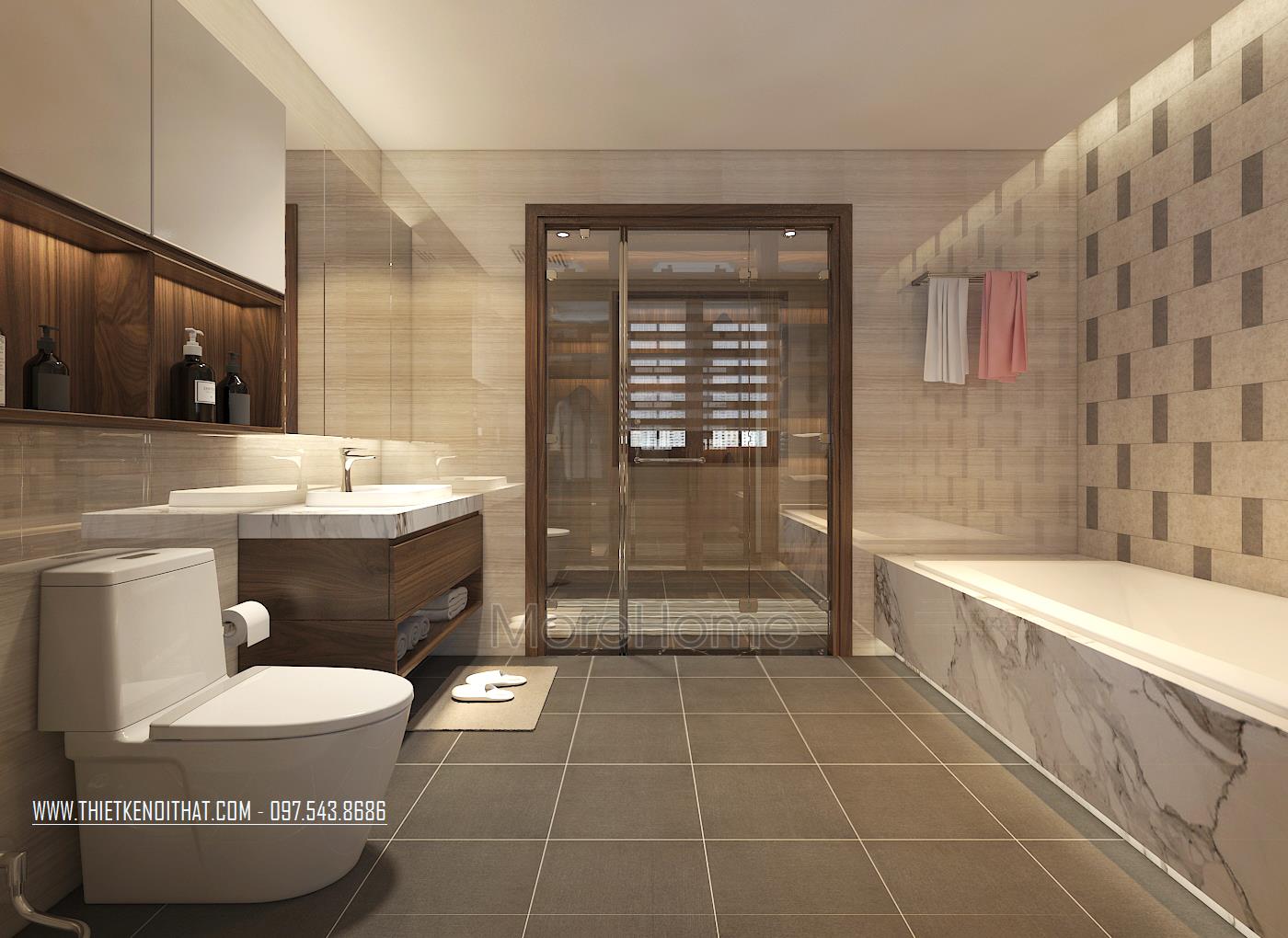 Đá ốp nhà tắm trong biệt thự gỗ óc chó An Hưng - Hà Nội